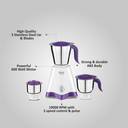 Preethi Crown 600 W Mixer Grinder (Crown Pro MG-254 with 5yr Motor Warranty Free Service | 3 Jars | White/Purple)