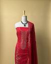 RED ZARI THREADWORK TISSUE SILK PARTY WEAR UNSTITCHED SUIT SET WITH CHIFFON DUPATTA THREE PIECE