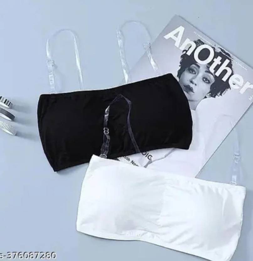 PreetyMore Women And Girls Full Coverage Viscose Lycra Pack Of 2 Women Everyday Lightly Padded Bra (Black, White)