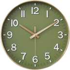 WHISKET Enjoy a peaceful environment with this ultra-quiet wall clock, perfect for bedrooms, offices, and study rooms. The precise quartz movement ensures accurate timekeeping without any ticking noise. Featuring bold, high-contrast numerals and a clear analog display, this 12-inch wall clock allows for effortless time-checking from any angle, making it ideal for seniors and children.A perfect blend of modern and classic aesthetics, this elegant wall clock enhances any space, whether it’s your living room, bedroom, kitchen, office, or hallway.Powered by one AA battery (not included) and designed with a convenient hanging hook, installation is quick and hassle-free, making it ideal for any home or workplace.Built with premium materials, this clock features a sturdy frame, clear glass cover, and high-quality clock hands, ensuring long-lasting durability and reliable performance. A must-have functional décor piece for your home or office. Makes a thoughtful gift for housewarmings, birthdays, weddings, and special occasions.