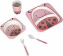 Dining Bamboo Fiber Kids Feeding Set. This Cutlery Dinnerware made from Bamboo Fiber material, non-toxic, lightweight and easy to clean. The bamboo fiber material is organic, Safe & Healthy Strong and flexible. This fun kids dinner set features a durable bamboo sectioned dinner plate. Full set, include child’s plate, bowl, cup, spoon & fork Cute attractive animal designs. An anti-spill no-tip design feeding bowl coordinating fork and spoon and an unspillable bamboo sippy glass bamboo. Includes : 5 -Piece Set include a large divided plate, bowl, cup, spoon, and fork. Can be used as food supplement bowl, also can be used as training bowl when baby grows up Perfect gift for baby shower Kids Feeding Set is specifically designed for children who are beginning to eat on their own. The plate and bowl at the bottom are of good stability, placed on a smooth desktop will not easily fall. Cute Appearance:cute and colorful design will attract kids.