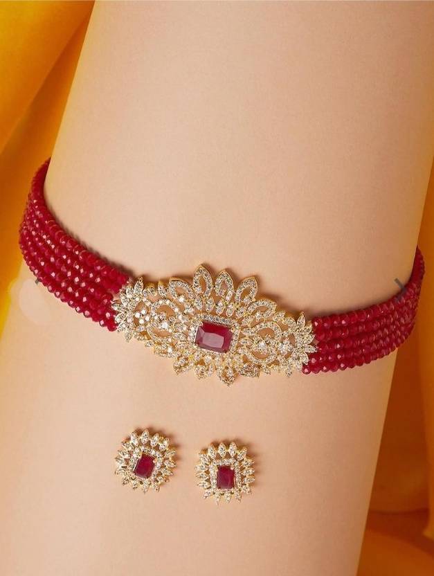 prem Brass Silver Red, White Jewel Set (Pack of 1)