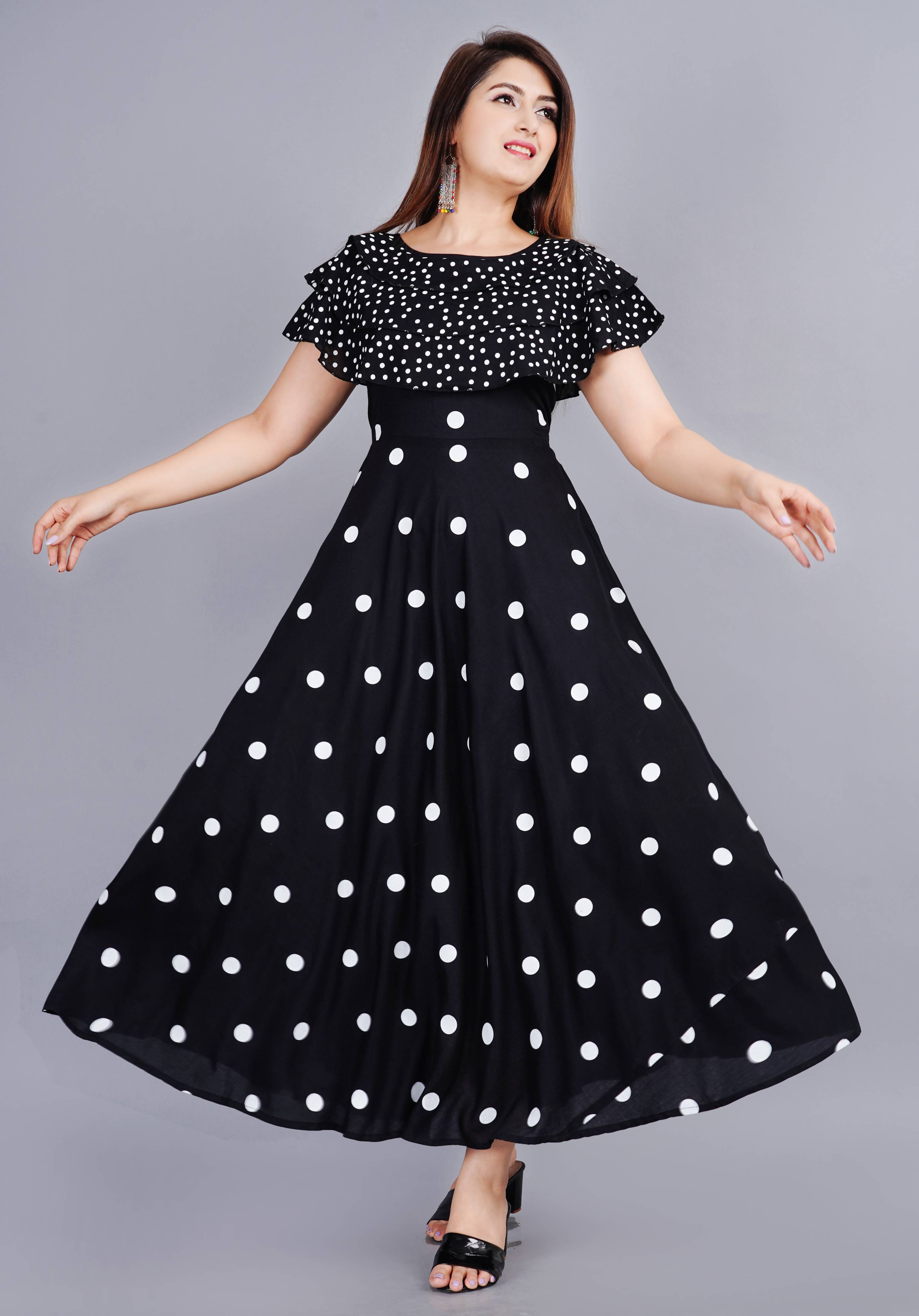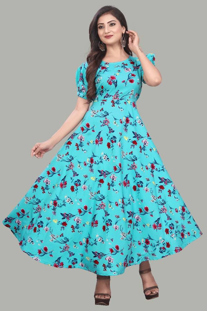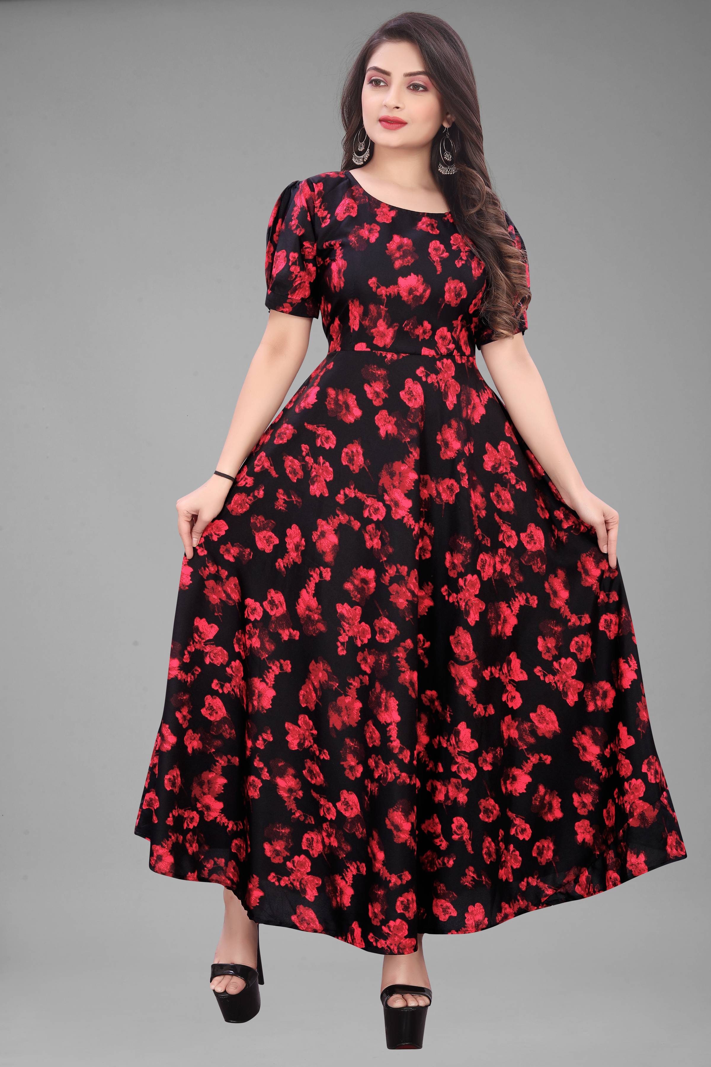 • FABRIC AND DESIGN: The crepe fabric in this attractive color ready to wear gown dress will make sure that the fitting of this beautiful readymade dress looks elegant on you in addition with beautifully designed puffed sleeves and Crafted from crepe fabric, it is light in weight and will be soft against your skin.