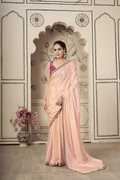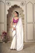 Beautiful magenta pink saree with subtle sheen. Contrast fancy zari cut golden scallop lace border for added elegance. Lightweight and easy-to-drape fabric for all-day comfort. Comes with a matching art silk printed blouse piece. Ideal for festive occasions, office wear, and social events.