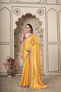 Elevate your ethnic wardrobe with Chinnon Chiffon Saree elegant plain soft flowy saree featuring a contrast Fancy Zari Cut Work golden Lace Border. Crafted from a soft-flowing fabric, this saree brings timeless grace with modern charm — perfect for festive gatherings, office parties, or special functions.