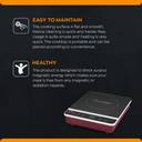 This induction cooktop offers flameless heating, making the cooking process safe and minimising the risk of any environmental hazards.