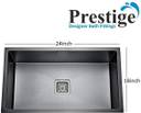 Prestige (24" x 18" x 10") 304 Grade Stainless Steel Single Bowl Sink Satin/MATT Finish with Square Coupling And waste pipe (Black Matt) Vessel Sink (Steel)