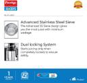 This Prestige appliance has an ABS plastic and stainless steel body that lasts for a long time, thanks to its rust-proof properties. Its elegant design is sure to complement your kitchen space. You can extract maximum juice with minimum wastage with the specially designed advanced stainless steel sieve.