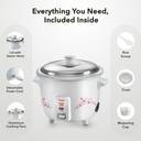 This rice cooker keeps an auto check on your food, thanks to its Control Switch lever which automatically shifts to 'Warm' mode from 'Cook' mode after it is cooked. The warm mode helps keep the rice warm and moist till you are ready to eat your meal.