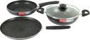 The Prestige Omega Deluxe 4 Pcs Cookware Set (Black) is aesthetically appealing and attractive for giving a new look to your kitchen. Made from aluminium, this cookware set is durable and sturdy. It features a high quality induction base for long lasting performance. Additionally, the Bakelite handles are sturdy enough to hold while cooking or pouring food. Thanks to the five layer non-stick coating, that ensures no sticking of food at the base of the pan.