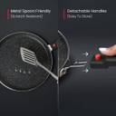 The cookware features a thick body that evenly distributes heat so that your food gets cooked uniformly. In addition to this, this feature makes the cookware quite durable so that it can withstand all your cooking experiments.