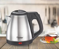 Bring home this electric kettle from Prestige and make your life easier by heating up water in a jiffy for your morning coffees. With features like ergonomically designed handle and stylish body, this kettle will add a touch of style to your kitchen’s interiors. The automatic shut-off feature allows you to attend to other chores while heating up water. Moreover, the 360-degree swivel base allows you to move this kettle around with ease.