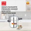 This Prestige pressure cooker comes with an anti-bulge induction base which can be used safely on both induction stoves and gas cooktops.