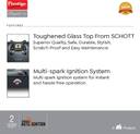 The toughened glass surface can withstand high heat and is also shatterproof, adding to the durability of this gas stove. Also, it adds to the superior looks and easy maintenance of the stove.