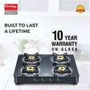 Prestige Royale Plus GT 04 Toughened Black Glass Top with Baati/Tandoor Stand Inside Glass Manual Gas Stove (4 Burners)