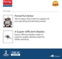 750 W : Higher the Wattage, tougher the Juicing/Grinding