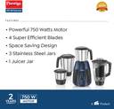 Bring home the Prestige Supreme Mixer Grinder, Your most versatile partner in the Kitchen. The 3 stainless steel jars and blending jar with sieve are built to take care of any grinding and juicing need, and the 750 watts heavy duty motor is designed to make every task quick and easy.