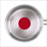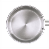The aluminium layer between the two steel layers offers even heat distribution any not spots over the pan.