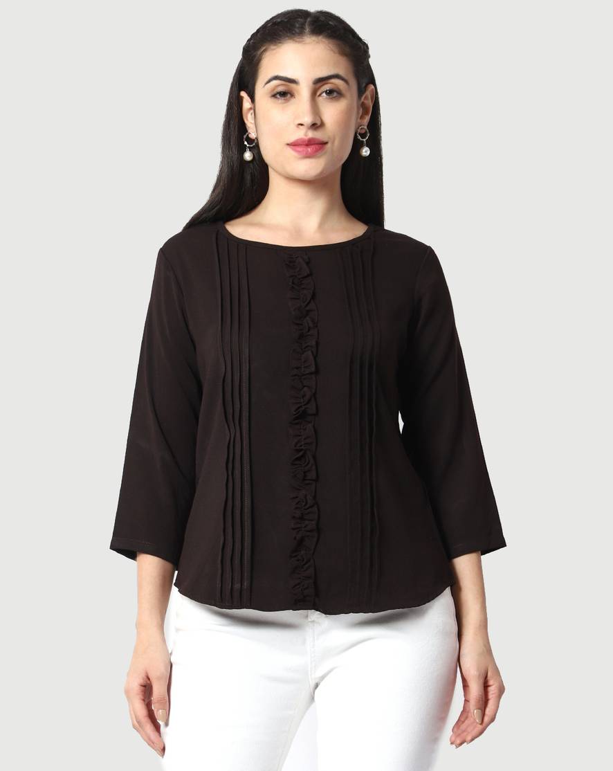Prettify Casual Solid Women Brown Top