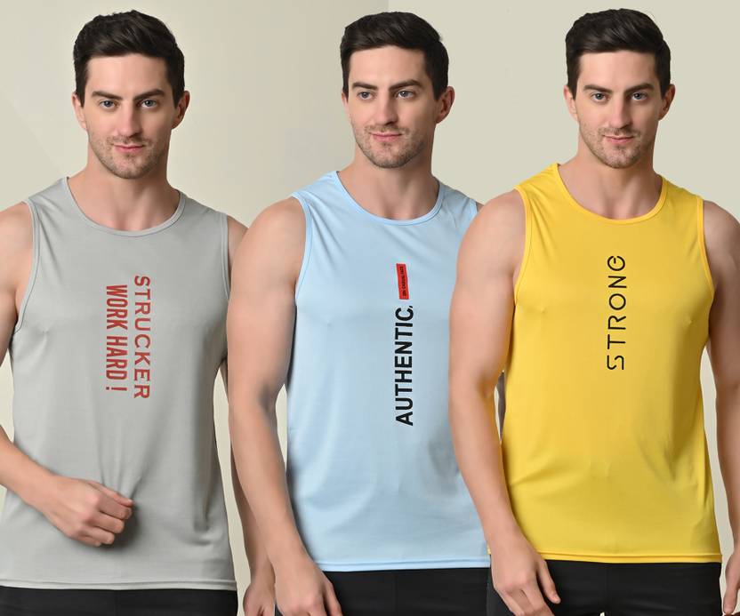 latest design printed men's vest is made from Cotton Blend fabric and comes in a range of colors including Yellow,Sky Blue, Grey and orange. The vest features a graphic print design, adding a stylish touch to its appearance. Create a lasting impression in this gym vests for men workout. This trendy sendo men is beautifully Crafted in 100% pure cotton. These sleveless t-tops for men is sleeveless and is definitely a must-have in your wardrobe The vest is designed without sleeves. The combination of the breathable Cotton Blend fabric and sleeveless design ensures that the wearer remains comfortable while also looking fashionable. Overall, this vest is a versatile addition to any man's wardrobe, suitable for casual or formal occasions.attractive stylish aesthetic trendy innerwear men will make you look attractive and will make you stand out of the crowd. You can wear this mens innerwear for going to a party, club, casual meetings & will definitely gives you comfort feeling