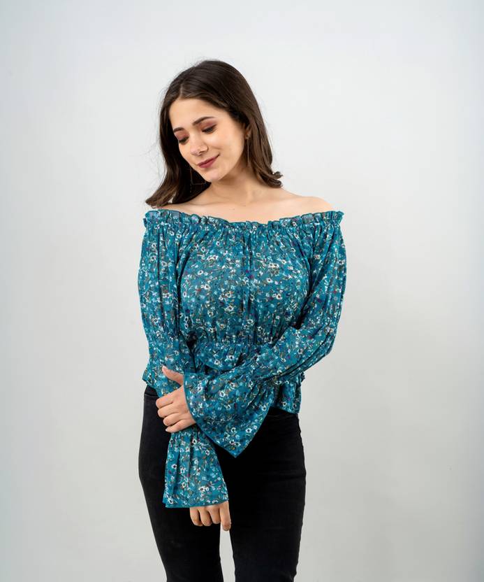 PRETTY LOVING THING Casual Full Sleeve Printed Women Blue Top
