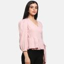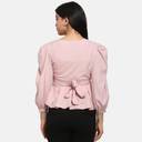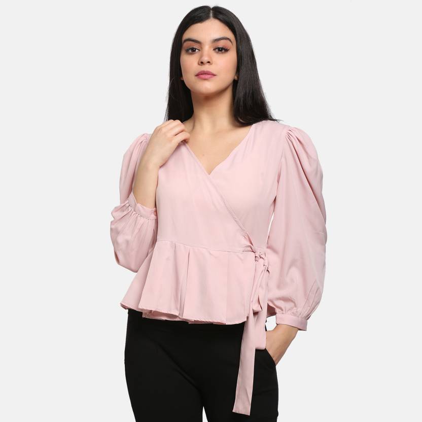 PRETTY LOVING THING Casual Puff Sleeve Solid Women Pink Top