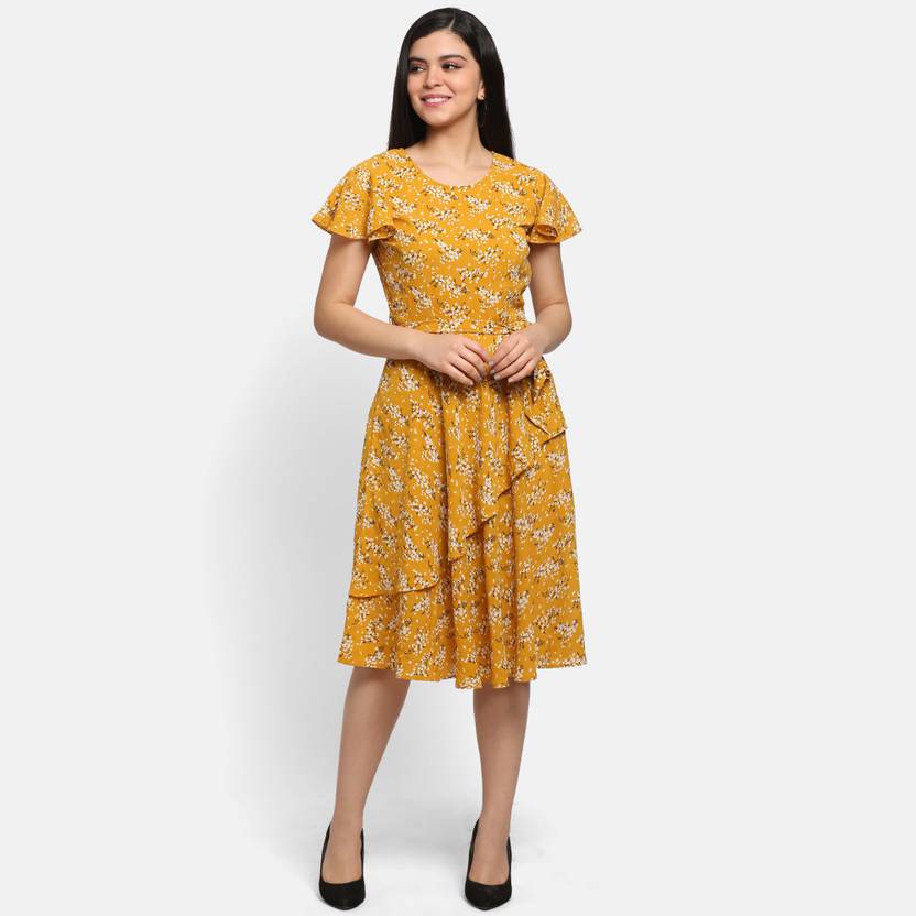 PRETTY LOVING THING Women Fit and Flare Yellow Knee Length Dress