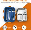 This lunch box is made of high-quality PP Plastic and stainless steel, Leak Proof material, durable, safe, and healthy to use. It has fine workmanship and a smooth surface, and it is very easy to clean and carry, perfect for using as a crisper in your fridge, a food storage box in your kitchen, or carrying foods to the office or school. Such a practical and convenient to use, you're worth it! It's super durable because the lunch box made from plastic is very strong. The lunch box comes with three detachable compartments with seal ring between the grids. It has a rubber ring inside to keep it completely sealed and reduce the loss of heat from the food. The design of the lunch box is very user-friendly. The compartments are designed to allow neatly placed food to make your dishes look more delicious. This lunch box is very convenient and exquisite, so you can use this lunch box when preparing for an outdoor picnic, working lunch, or preparing lunch for your child! It's very thin, light, and can be easily carried in a backpack or briefcase anytime, anywhere. With our lunch box, you don't have to eat the unpalatable and expensive food outside. You can cook delicious dishes and enjoy delicious food. Prepare delicious meals for you or your friends and family.