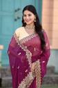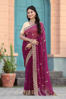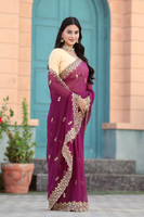 PRETTYAGE Solid/Plain, Embroidered Bollywood Georgette, Silk Blend Saree (Purple)