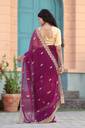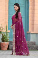 Featuring mirror and booti work embroidery, this women's saree showcases meticulous detailing that enhances its aesthetic appeal. The mirror work adds a reflective charm, while the booti embroidery offers a subtle yet elegant pattern. This combination of artisan craftsmanship and modern design makes this saree a standout piece for any occasion, reflecting timeless elegance and cultural heritage.