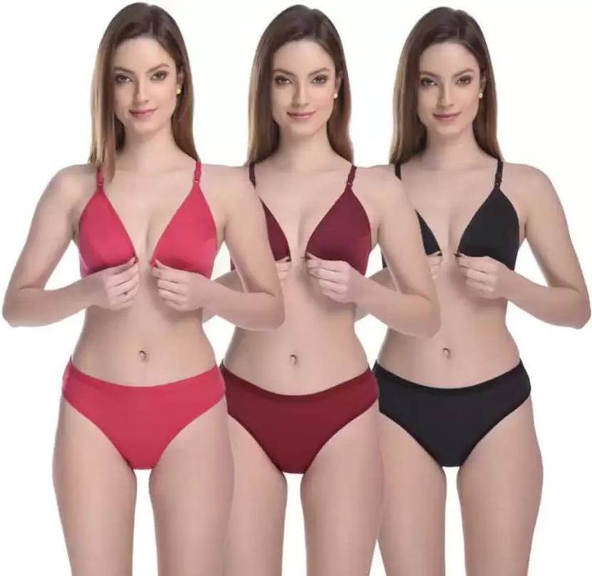 Bra & Panty Set Solid Red, Black, Maroon Lingerie Set