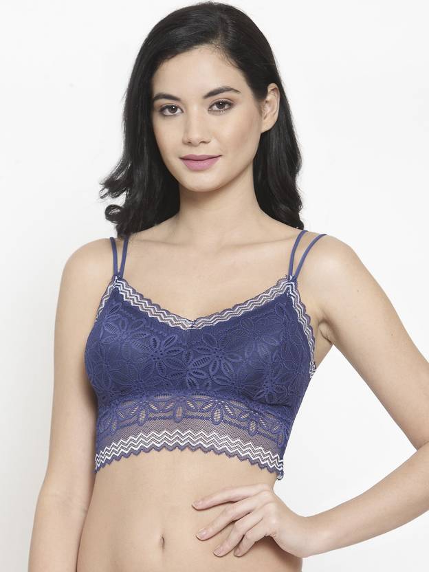 PrettyCat PrettyCat Elegant Lace Brallete Women Bralette Lightly Padded Bra (Blue)