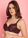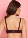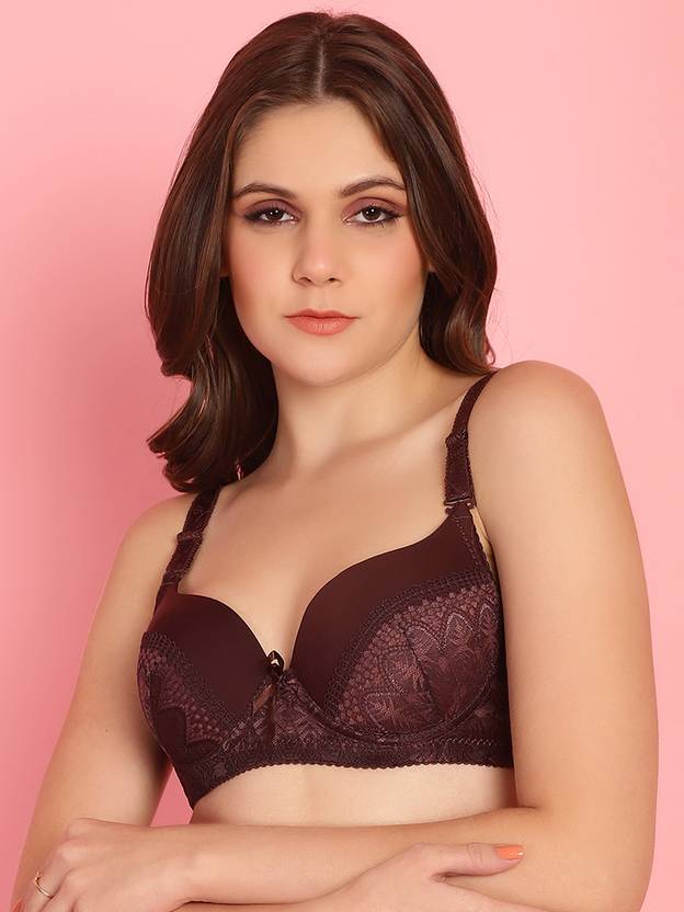 PrettyCat brown T-shirt bra is features padded bra cup to ensure modesty protection. It is meticulously crafted from exquisite floral self-patterned lace fabric, adding a touch of elegance to its design. This underwired bra cups providing a comfortable gentle lift to your cleavage. With full coverage bra cups, it effectively prevents any potential top or side spillage. The double-layered cups are designed to safeguard modesty. Additionally, the bra includes detachable straps, allowing for versatile styling options.