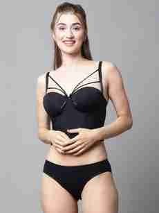 Bra & Panty Set Solid Black Lingerie Set