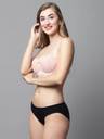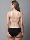 PrettyCat T-shirt bra with black panty for awasome look. Pushup padded cups to protect modesty. Crafted with exquisite self-patterned polyester & lace fabric. Underwired cups for a gentle lift. Wide set straps for broad neck outfits. Detachable straps to wear as a strapless bra or style in multiple ways. Cute bow at centre for embellishment. Triple hook & eye enclosures in bigger cups. Designed with cage-style at front. Dual strap on the back secured with hook & eye enclosures. Soft elastic at the waistband & leg openings for a snug fit. Double layered gusset for hygiene.