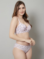 Boasting adjustable, detachable straps, the bra from this set offers enhanced versatility. Owing to this thoughtful design, you can customise the fit according to your preference, ensuring comfort throughout the day. The detachable feature also allows you to switch between different looks, making it an ideal choice for various outfits. Moreover, this underwired and lightly padded bra is embellished with a bow in the centre for added elegance. Paired with a hipster panty, this set is suitable for various occasions.
