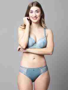Piylu Bra & Panty Set Self Design Grey Lingerie Set