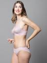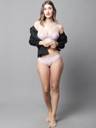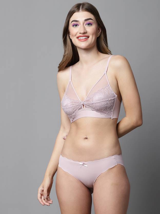PrettyCat pink plunge bralette with low rise panty, crafted with lace & soft powernet fabric. Nano padded cups to protect modesty. Non-wired cups to prevent pokes. Scalloped lace trims for along neckline & underbust for added style. Demi cups with plunging neckline for deep neck outfits. Adjustable straps for a snug fit. Secured with triple hook & eye closures at the back.