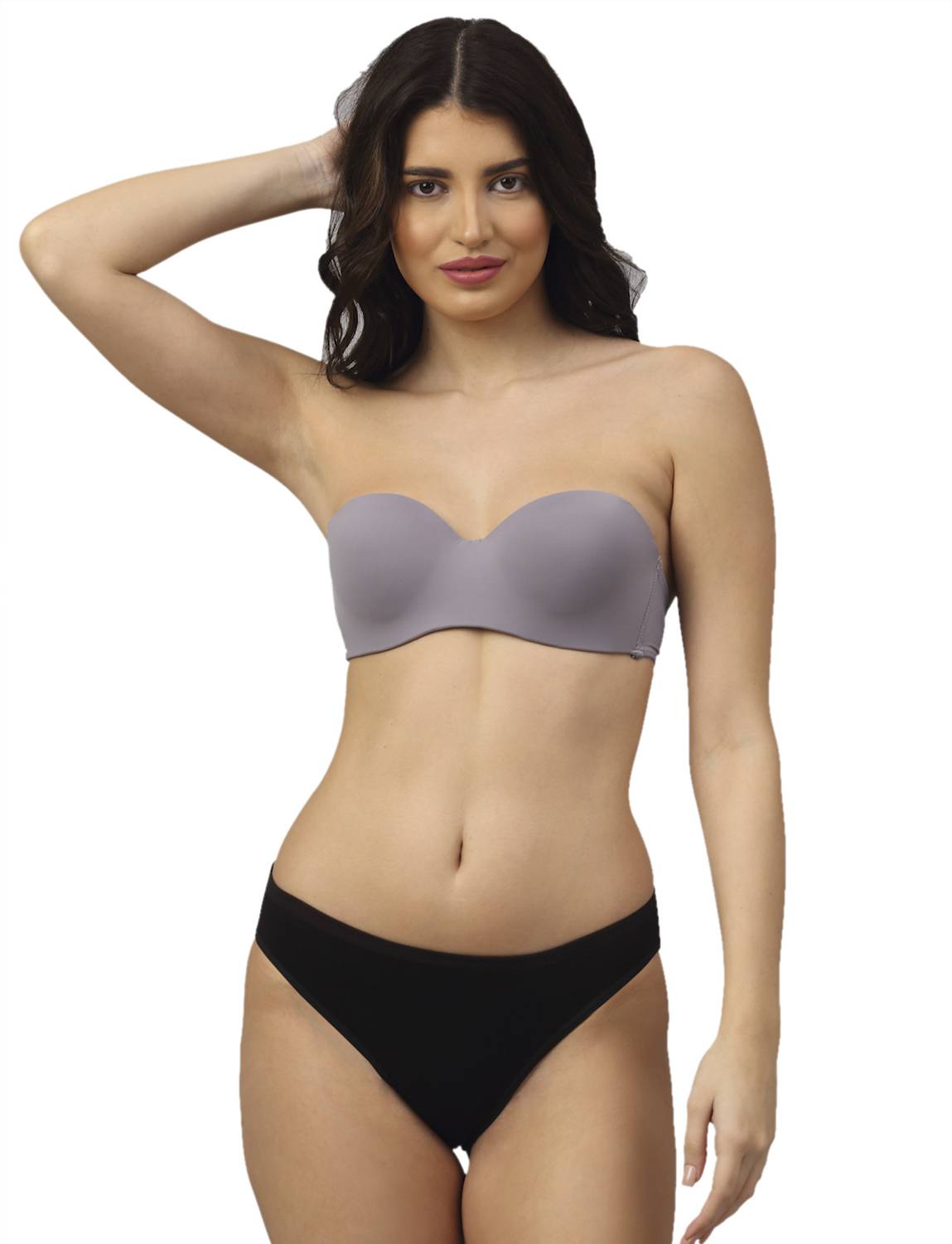 PrettyCat wired strapless tshirt bra panty set , This balconette bra by PrettyCat comes with Very soft smooth fabric ,Soft cup for all day comfort ,seamless cups for invisible & clean look,Thik pad cups, Seamless Soft fabric gives luxury feel ,Can be worn with straps and without straps as a strapless bra ,With Black PantyFits every women Wardrobe.