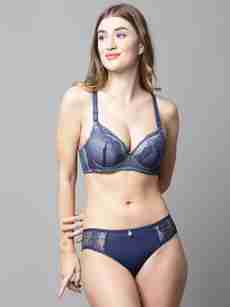 Piylu Bra & Panty Set Self Design Blue Lingerie Set