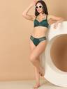 PrettyCat green bra with matching panty lingerie set is features padded bra cup to ensure modesty protection. It is meticulously crafted from exquisite floral self-patterned lace fabric, adding a touch of elegance to its design. This underwired bra cups providing a comfortable gentle lift to your cleavage. With full coverage bra cups, it effectively prevents any potential top or side spillage. The double-layered cups are designed to safeguard modesty. Additionally, the bra includes detachable straps, allowing for versatile styling options.