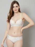 Courtesy of its lace embellishment, this lingerie set boasts a uniquely designed T-shirt bra with a matching panty, providing an elegant and fashionable look. Owing to its underwired and lightly padded structure, it not only offers extra support but also enhances your silhouette, ensuring a fabulous appearance.