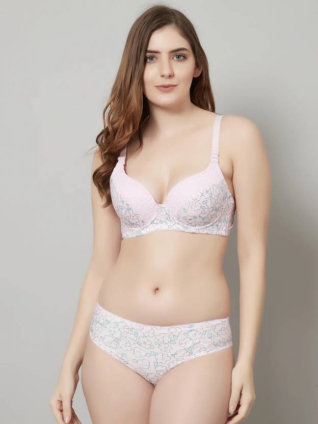 PrettyCat Bra & Panty Set Printed Pink Lingerie Set