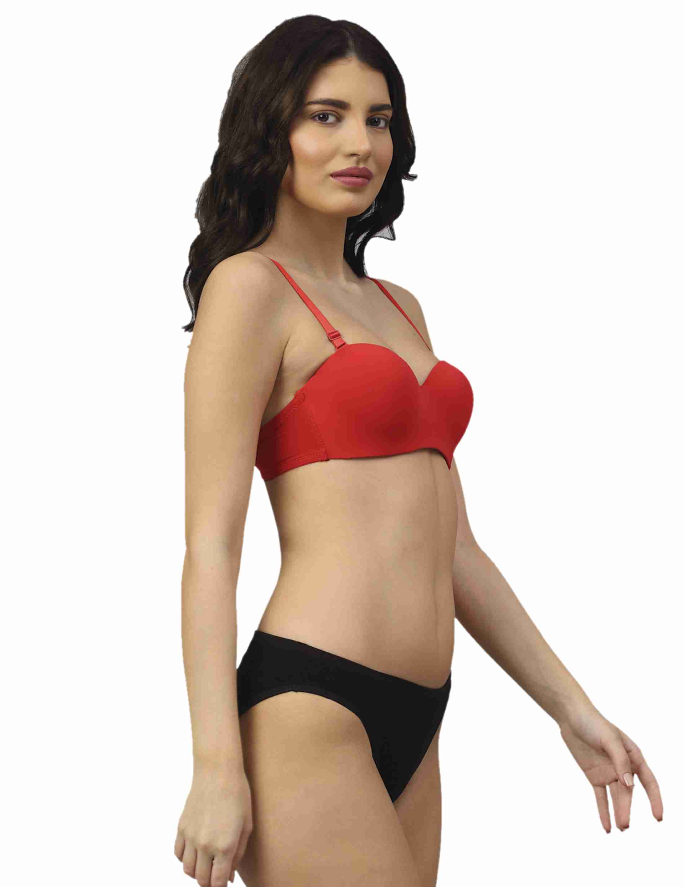 PrettyCat wired strapless tshirt bra panty set , This balconette bra by PrettyCat comes with Very soft smooth fabric ,Soft cup for all day comfort ,seamless cups for invisible & clean look,Thik pad ...