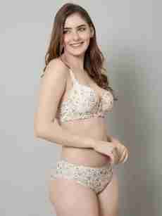 Bra & Panty Set Printed Beige Lingerie Set