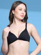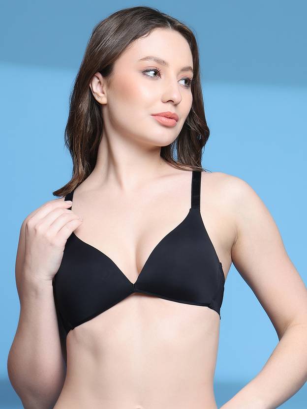 Nonwire Bra, Lightly Padded Bra, Solid Bra, Plunge Bra, Soft Fabric Bra, Polyester Bra, Back Closure, Regular Strap Bra