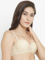 PrettyCat PrettyCat Strapless Pushup Striped Bra. Women T-Shirt Heavily Padded Bra (Beige)