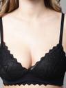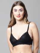 PrettyCat black bra crafted with comfortable & breathable polyester blend fabric & exquisite lace fabric on the cups. Lightly padded cups to avoid extra bulk. Non-wired cups for poke-free experience. Scalloped lace detail along the neckline.