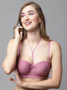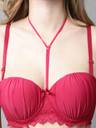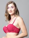 PrettyCat red balconette bra for awasome look. Padded cups to protect modesty. Crafted with exquisite self-patterned polyester & lace fabric. Underwired cups for a gentle lift. Wide set straps for broad neck outfits. Detachable straps to wear as a strapless bra or style in multiple ways. Cute bow at centre for embellishment. Triple hook & eye enclosures in bigger cups. Designed with cage-style at front. Dual strap on the back secured with hook & eye enclosures. Soft elastic at the waistband & leg openings for a snug fit. Double layered gusset for hygiene.