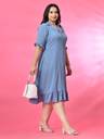 PrettyPlus by Desinoor.com Women A-line Light Blue Midi/Calf Length Dress